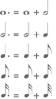 •Puntillo: elemento representado por un punto colocado delante de la figura musical, el cual aumenta la mitad de la duración de la nota.